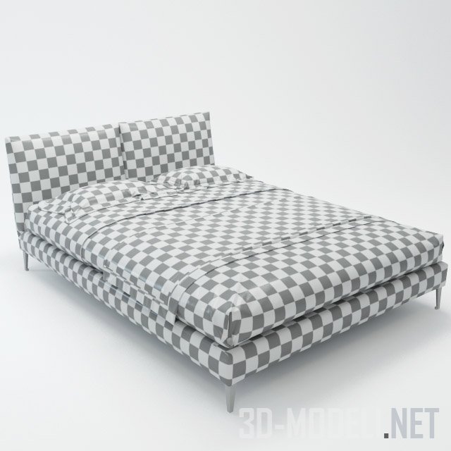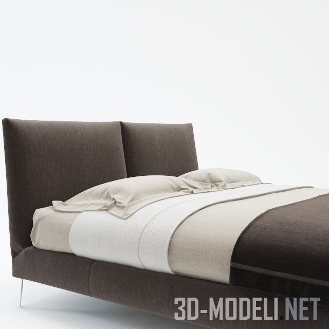 Современная двуспальная кровать Selene Maxalto от фабрики B&B Italia. Кровать на небольших металлических ножках. Конструкция и изголовье обтянуто мягкой тканью шоколадного цвета, красиво гармонирующей с белым постельным бельем. Качественная модель с текстурами в архиве.