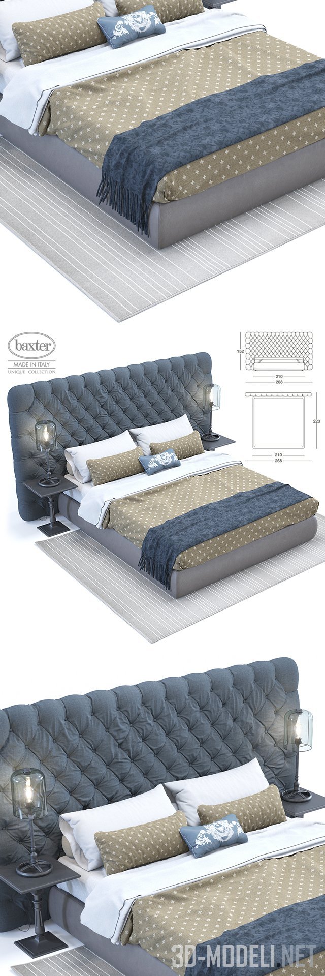 Современный набор для наполнения спальни с кроватью Heaven от Baxter. В комплекте двуспальная кровать с высоким изголовьем, постельное белье, прикроватный столик-тумба, настольная лампа. Высококачественная 3d модель с настроенными материалами и текстурами в архиве.