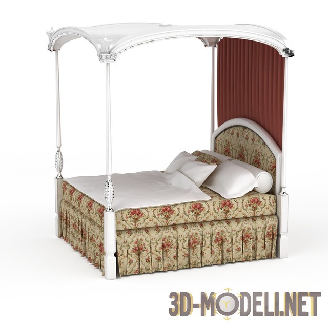 3D модель кровати в романтическом стиле, с балдахином. Невероятно уютная кровать, с использованным в текстиле цветочным принтом, станет самым романтичным местом отдыха в любой спальне.