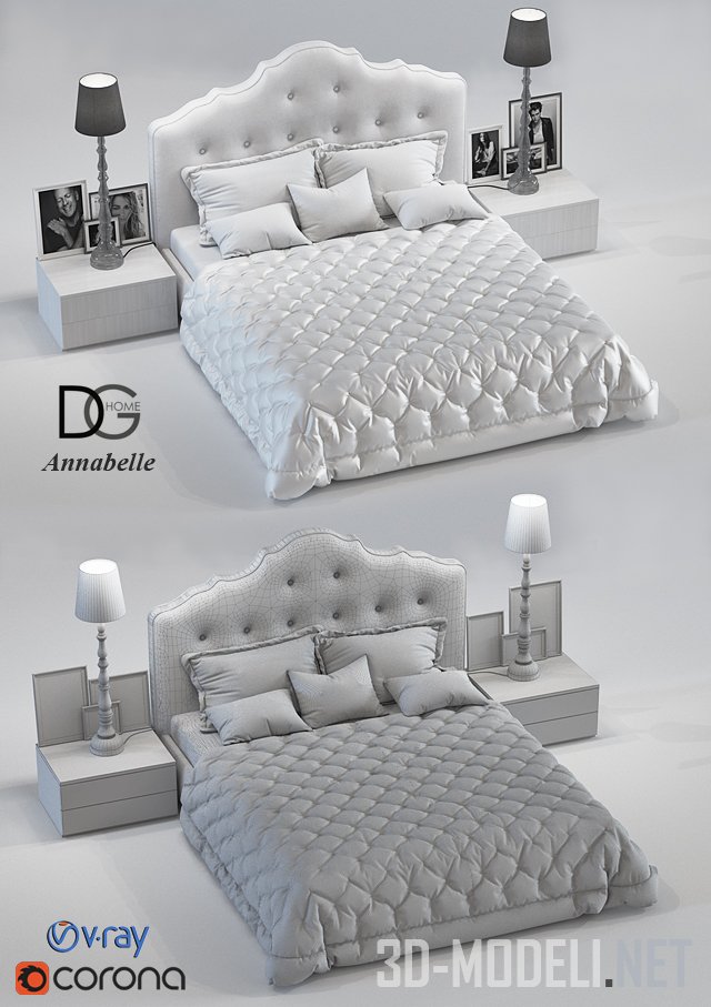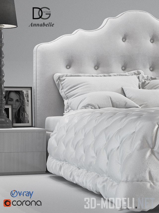 Роскошная двуспальная кровать белого цвета, модель DG Home Annabelle. Дизайн в стиле современного арт-деко сделает кровать центром внимания в интерьере спальни. Размеры кровати: 1730 х 1730 х 1250. В комплекте присутствует постельное белье, прикроватная тумба, настольная лампа HL14015. Размеры: 250 х 270 х 1000.