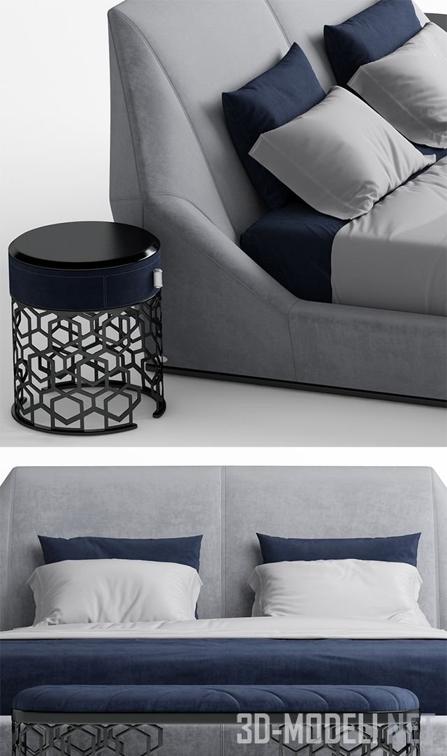 Реалистичная модель высокого качества современной двуспальной кровати Yume от Longhi. Кровать дополнена аксессуарами, подчеркивающими достоверность.