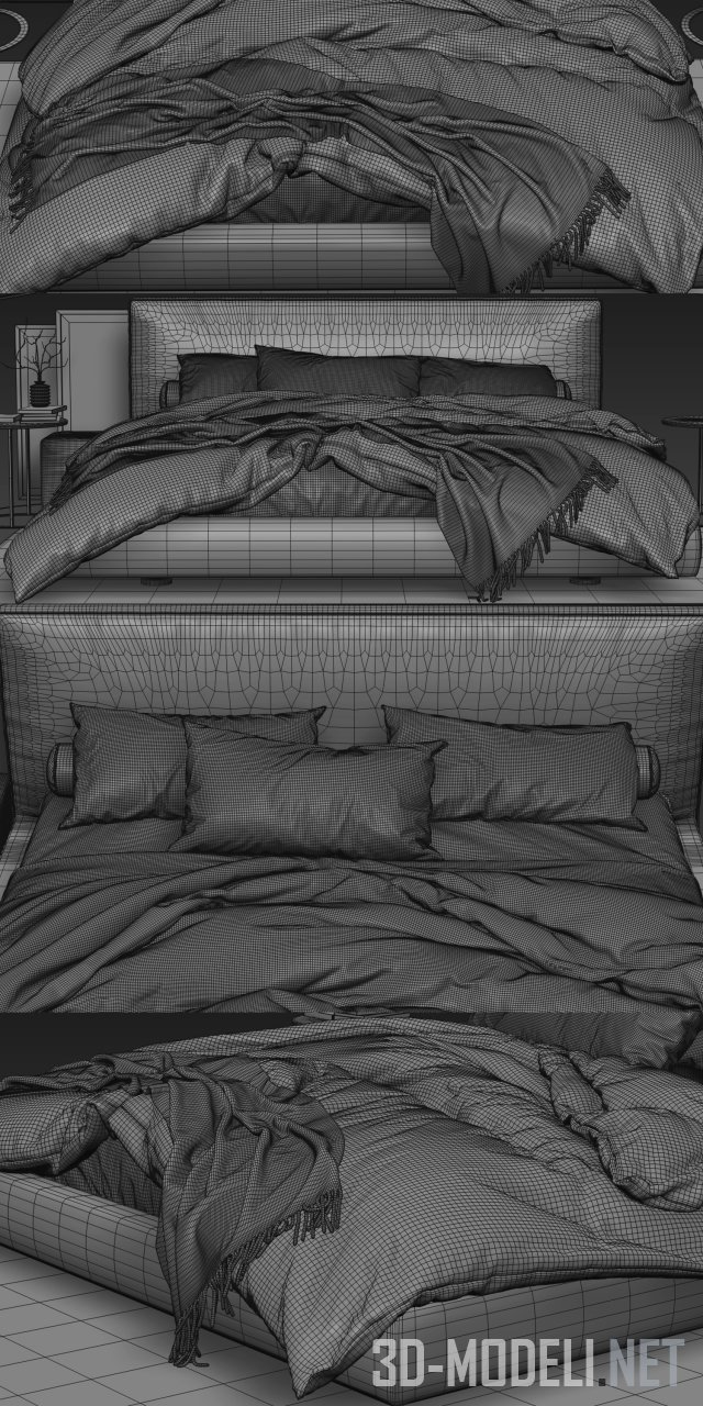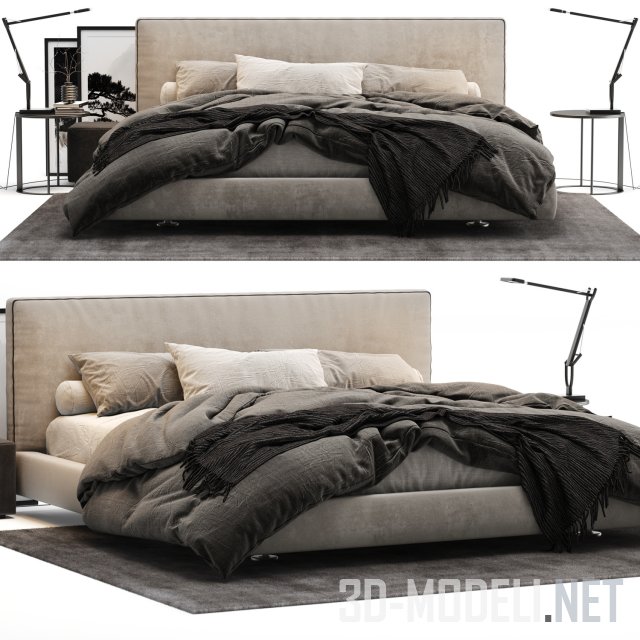 Удобная современная двуспальная кровать Richard производства B&B Italia. Кровать смотрится очень лаконично, что позволит ей вписаться в любой интерьер. Дополнена постельным бельем с подушками, светильниками и декором.