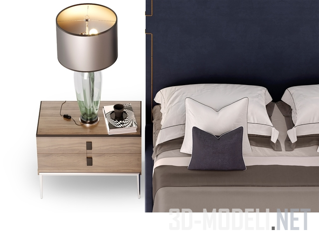 Двуспальная кровать HOLLAND Luxury производства фабрики The Sofa and Chair Company. Кровать с высоким изголовьем, элегантность дизайна подчеркивает цвет обивки. В комплекте присутствуют прикроватные тумбы Langham, которые дополнены элементами декора и настольными лампами PETITE CONCAVE SILVER.