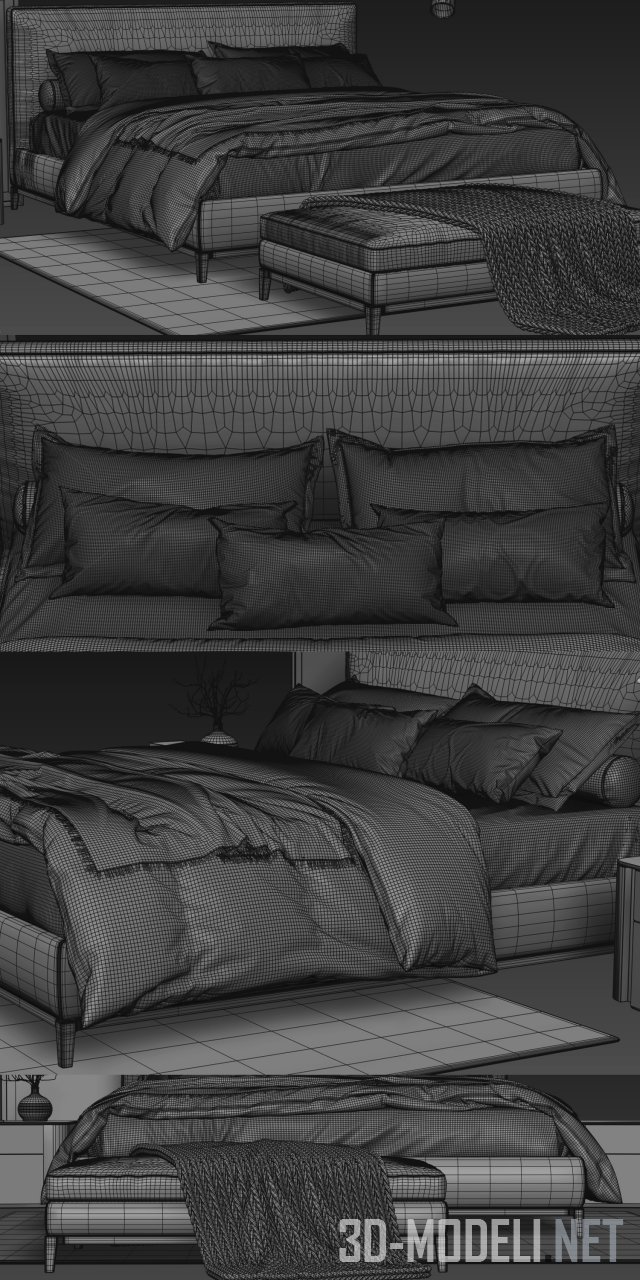 Кровать Minotti Andersen, с банкеткой и вязаным пледом