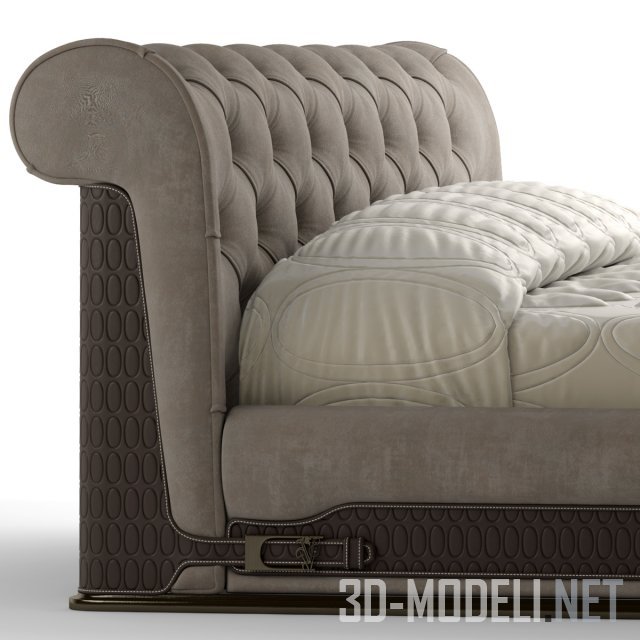 Роскошная двуспальная кровать из коллекции Chester Laurence visionnaire. Изголовье с утяжкой капитоне, отделка-ремни по периметру кровати, изысканные постельные принадлежности и другие изящные детали (логотип фабрики на фасадах тумбочек, светильники и пр.) делают модель настоящей находкой для интерьера спальни в стиле арт-деко.