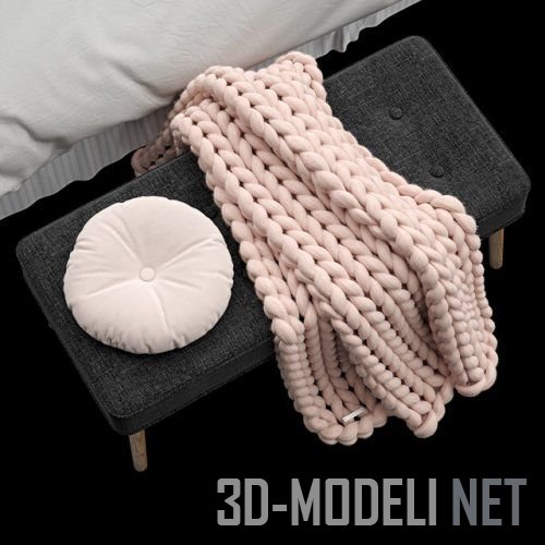 банкетка, плед, вязаный, подушка, тумба