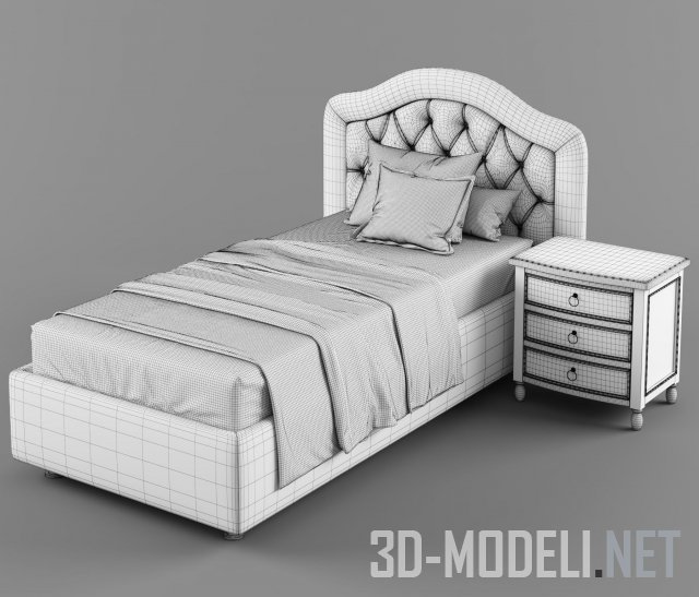 Красивая романтичная кровать Sofia в классическом стиле. Ее каркас сделан из массива дерева и фанеры. Изголовье и основание обиты розовой велюровой тканью. На кровати лежит белое и розовое постельное белье. Размеры кровати: 198 x 123 x 114 см. В наборе