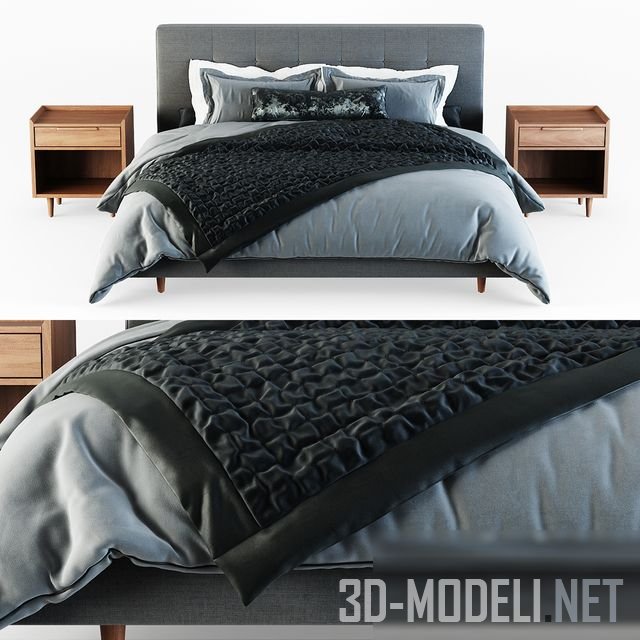 Двуспальная кровать и прикроватные тумбочки из коллекции Tate производства Crate and Barrel. В комплекте постельное белье. Размеры кровати: 2110 х 2300 х 1145 мм. Размеры тумбочки: 585 х 465 х 635 мм.