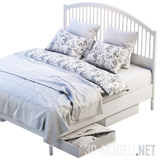 Двуспальная кровать с ящиком для хранения. Кровать производства бренда IKEA, модель Tissedal. Габаритные размеры кровати: 2100 х 1870 х 1400 мм.