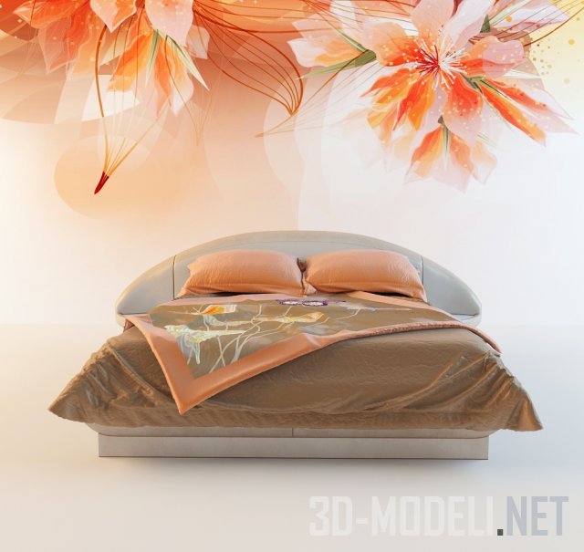 Нарядный комплект постельного белья для двуспальной кровати. Золотисто-охристое одеяло является отличной основой и прекрасно гармонирует с накидкой и подушками. Наволочки оранжевые, накидка пестрит бабочками.