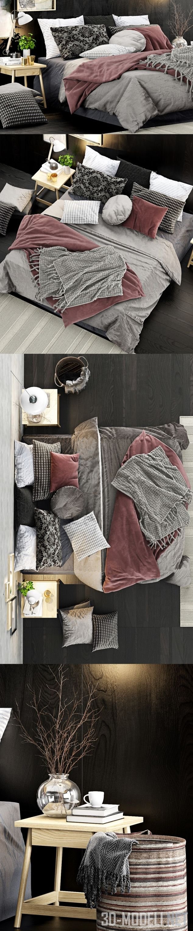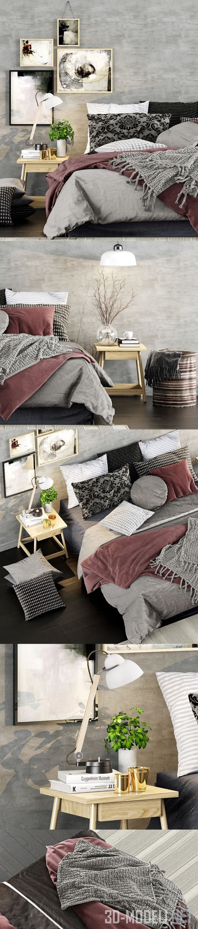 Эклектичный комплект для спальни. В наборе двуспальная кровать, настольная лампа Wastberg w084 studioilse, подвесной светильник Wastberg w162 dalston, а также множество аксессуаров и предметов декора. Дизайнеры: Ilse crawford, Sam Hecht & Kim Colin.