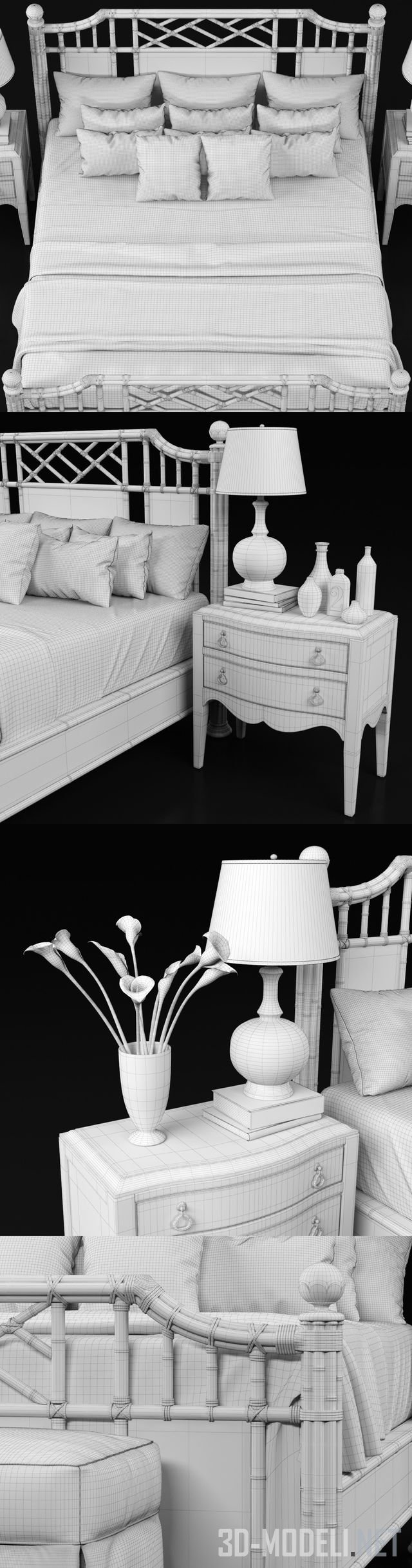 Двуспальная кровать с колоннами модель (Pritchards Bay Panel Bed) из коллекции IVORY KEY от бренда Lexington является основой мебельного сета для спальни. Ее дополняет прикроватный столик Martello, пуф Half Moon Caye, а также каллы, настольные лампы, подушки и декоративные элементы.