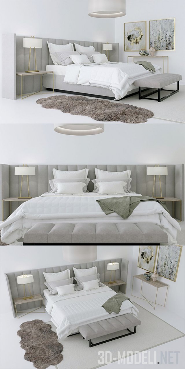 Уютная спальня, набор Provence от бренда The Sofa & Chair Company. В комплекте двуспальная кровать Provence с изголовьем (4100 х 2140 х 1300 мм), прикроватный столик Lunar (830 х 430 х 520 мм), консольный стол Lunar (1233 х 422 х 772 мм), ковер Bala wool (2500 х 150 х 3500 мм), светильник Monocle (460 х 250 х 770 мм), вазы Magma medium (200 х 200 х 330 мм), Magma small (120 х 120 х 120 мм), Magma medium jar
