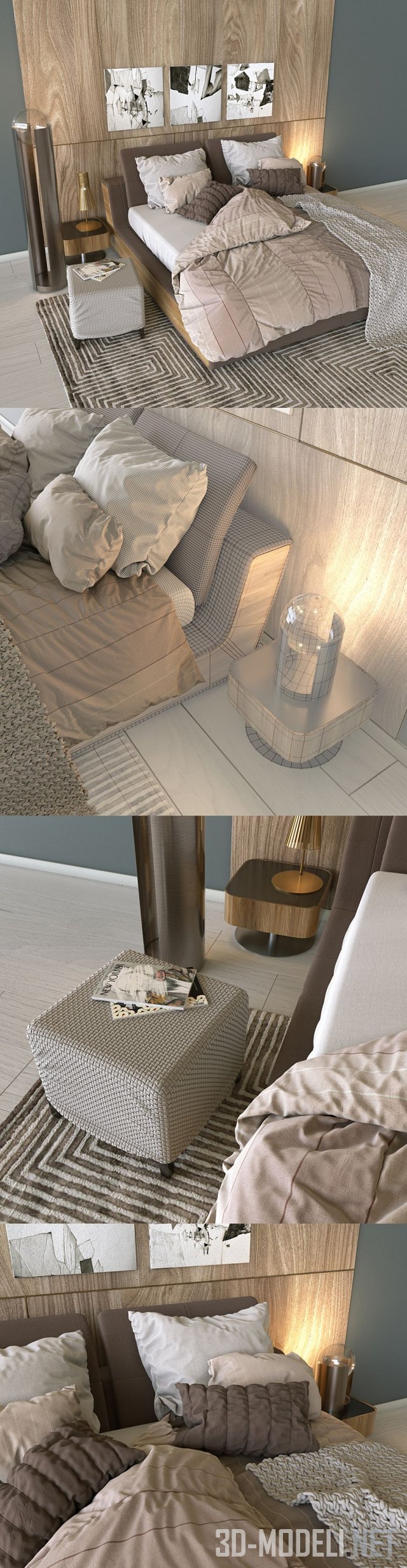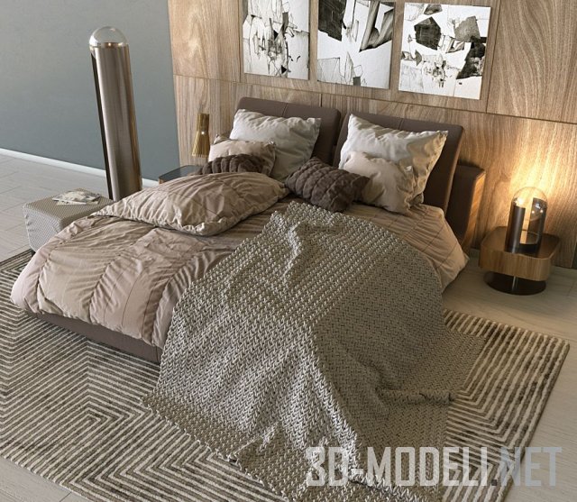 Двуспальная кровать Sama производства известной итальянской фабрики. Габаритные размеры кровати: 225 x 238 x 68 см. В комплекте лампы Softwing и пуф Olivier.