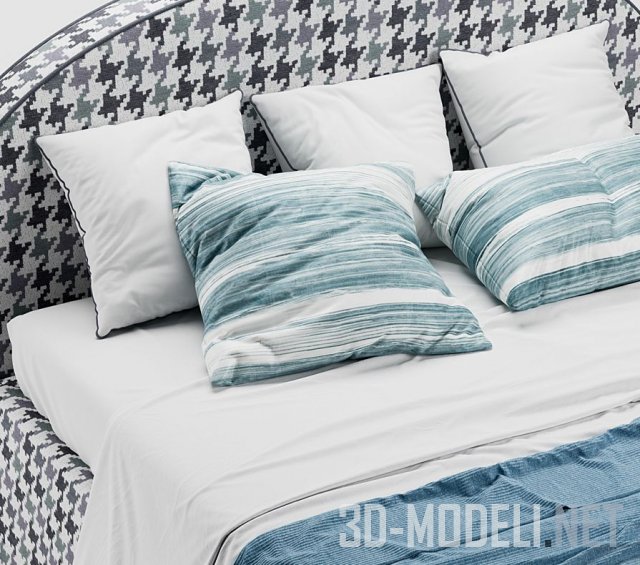 Двуспальная кровать с закругленным изголовьем, BOLD от бренда Letti&Co. Дизайнер: Paola Navone. Размеры кровати: 226 х 200 х 130 см. Обивка с принтом «гусиные лапки» делает кровать очень модной и уютной одновременно.