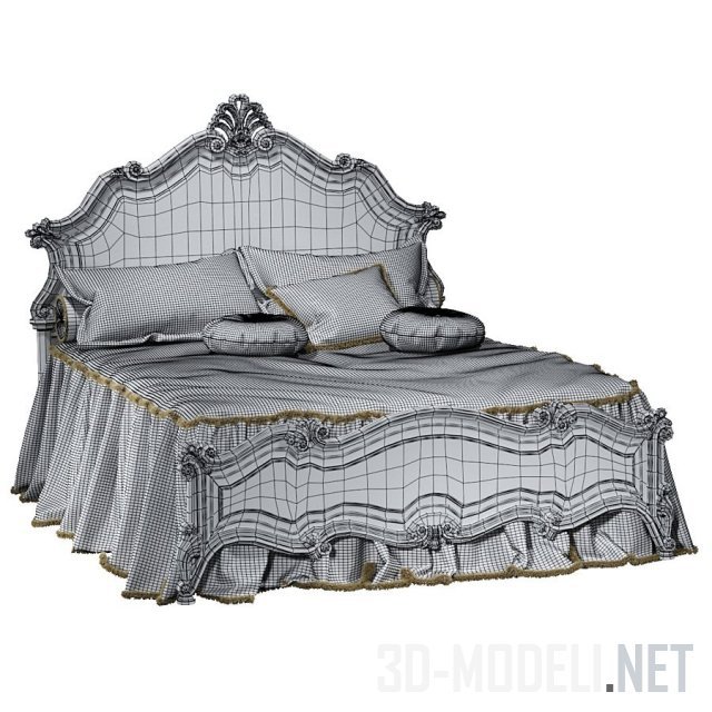 Роскошная двуспальная кровать для классического, барочного интерьера спальни, модель Alberto Mario Ghezzani Barocco. Страна производитель: Италия. Отделка кровати: сусальное золото. Длина 197 см, ширина 220 см, высота кровати 155 см.
