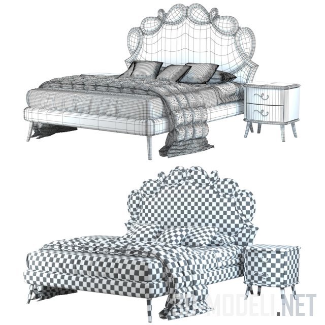 Качественная трехмерная модель для красивого интерьера. В наборе двуспальная кровать и тумба CorteZari Letti Matrimoniali PAPILLON. Элегантная цветовая гамма и отделка мебели внесут в пространство спальни достойный шик.