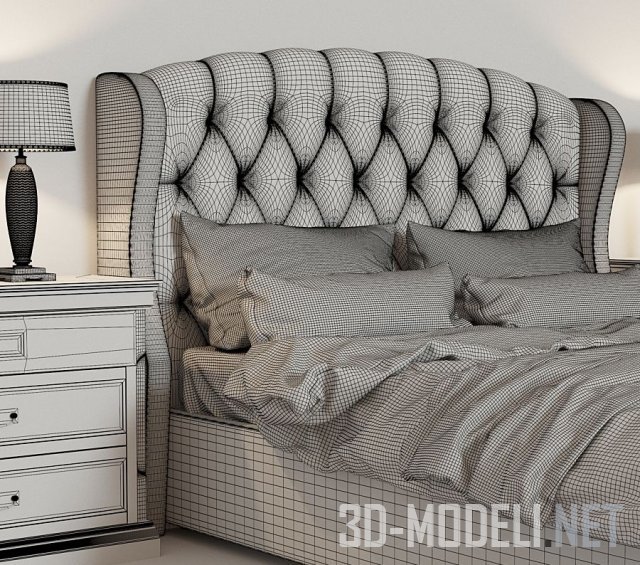 Двуспальная кровать для классического интерьера – Genoa Perrino. Кровать мягкая и удобная, яркая обивка делает ее заметной. На выбор в комплектацию входит вместительный ящик для хранения или ортопедическое основание на ножках.