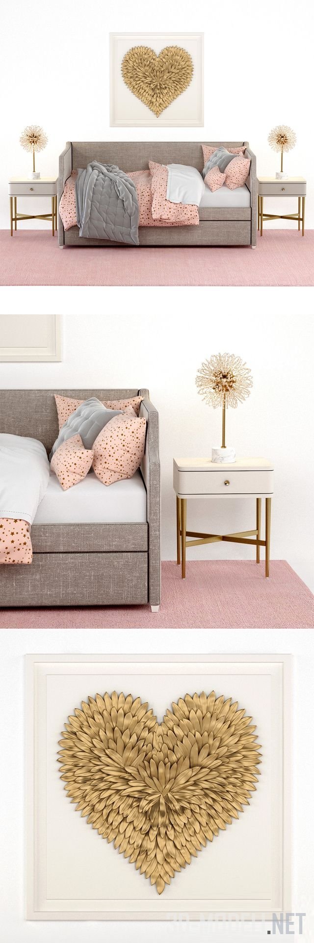 Красивая кровать от бренда Idealbeds ANNIKA (артикул ANNT90 ), с дополнительным спальным местом. Его размер: 90 х 200. Размер кровати: 98 х 214 х 103 см. Для изготовления кровати использовались массив бука, березовая фанера, для отделки текстиль. Кровать дополнена прикроватными столиками SERAPHINA с настольными лампами JOSIE CRYSTAL, которые идеально сочетаются с настенным декором FEATHERED HEART - GOLD.