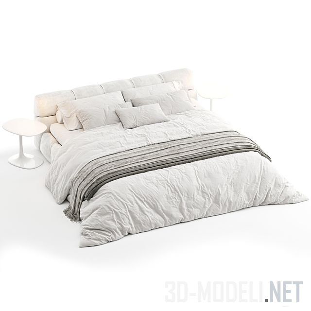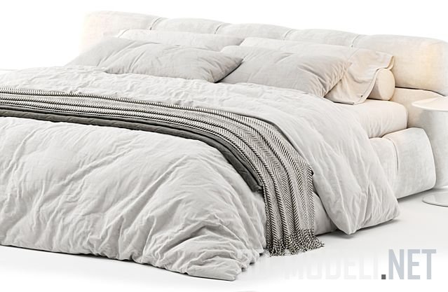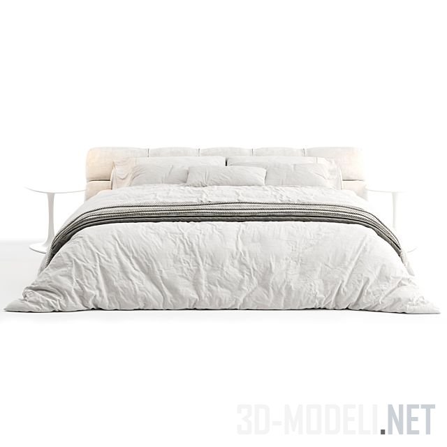 Двуспальная кровать Tufty от бренда B&B Italia. Размер кровати: 2470 x 2000 x 770 мм. Кровать невероятно уютная и мягкая, в комплекте постельным бельем и подушками, а также прикроватной тумбой белого цвета (B&B Italia Awa, размер тумбы 580 x 450 x 500 мм) смотрится необычайно воздушно и привлекательно.