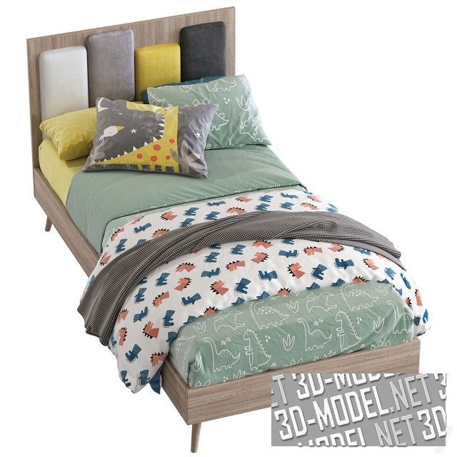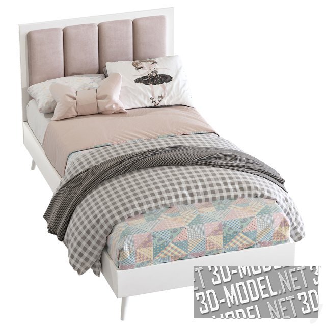 Современная кровать с мягким изголовьем, матрасом, подушками, оделом и покрывалом. Представлена в двух вариантах отделки и расцветки. Отлично вписывается в пространство спальной комнаты. Размер матраса: 90 х 200 см.