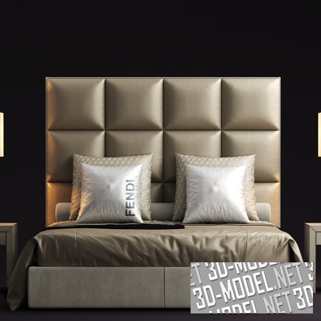Роскошная двуспальная кровать с высоким изголовьем - Diamante производства бренда Fendi Casa. Кровать представляет собой изысканный предмет мебели для спальни, и является воплощением элегантности и комфорта. Кровать Diamante имеет обивку премиум-класса, характерный для бренда декор и все элементы высокого уровня изготовления. Это мебель, предлагающая сочетание комфорта и элегантности для самых взыскательных людей.
