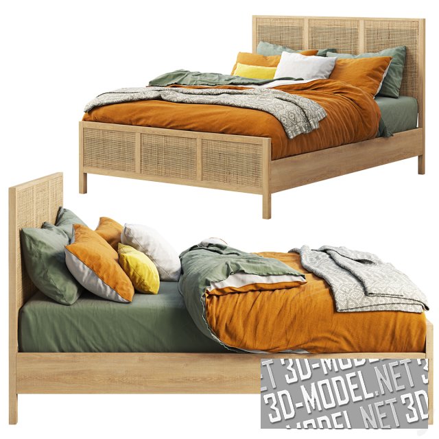 Joybird, кровать, деревянный, плетеный, изголовье, этнический, интерьер