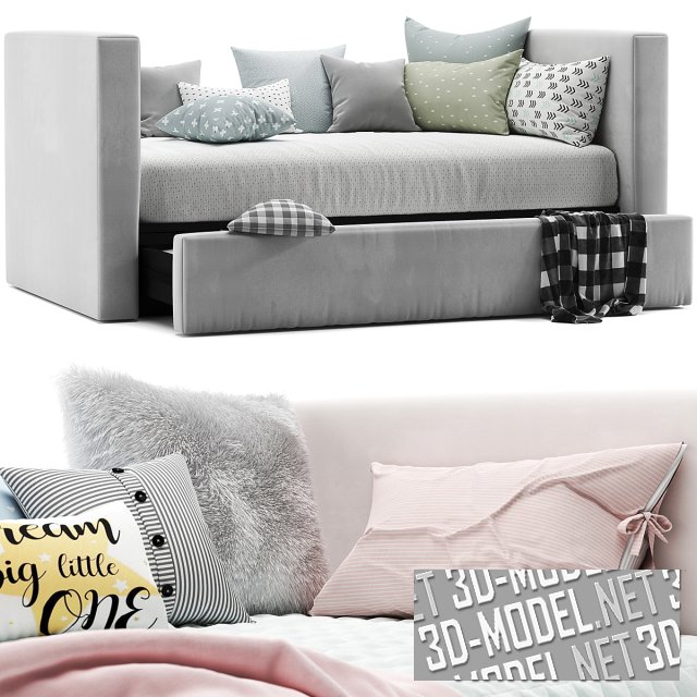 Современная выдвижная кровать Daybed & Trundle от производителя Urban. Представлена в двух вариантах обивки. Благодаря универсальному минималистичному дизайну успешно подойдет в любую детскую комнату. Мягкий матрас, изголовье и изножье обеспечивают максимальный комфорт.
