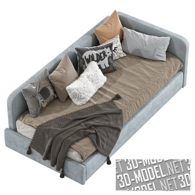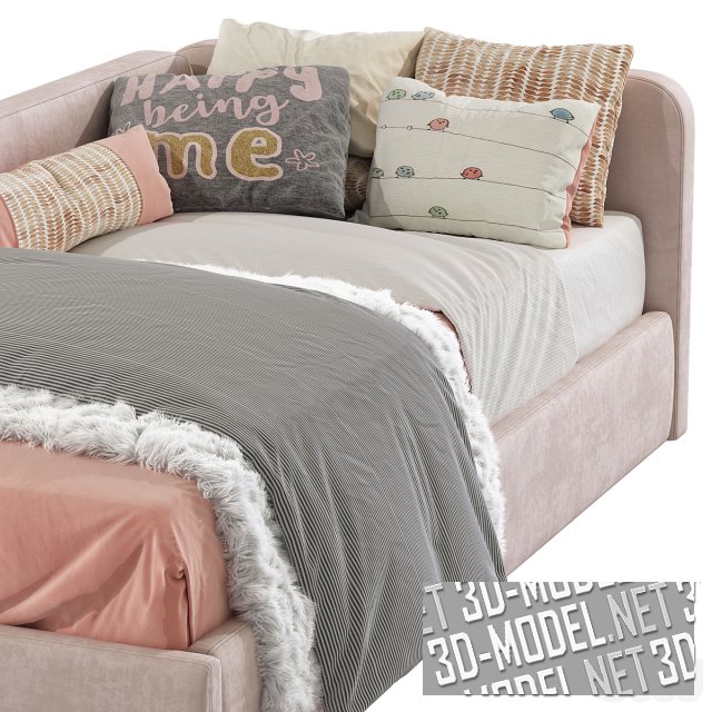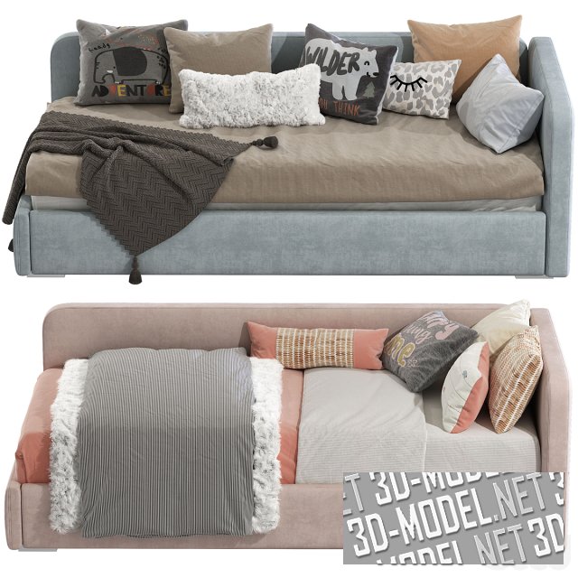 Мягкая кровать-диван для современного интерьера спальни. Мебель представлена в двух вариантах расцветки: кирпично-розовый и серо-голубой. Универсальный предмет может послужить как элегантным диваном в качестве украшения, так и комфортным спальным местом. Размер матраса: 90 x 200 см.
