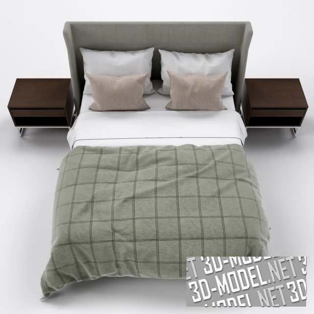 Двуспальная кровать с универсальным дизайном, который позволяет удачно интегрировать ее в любой стиль интерьера, от классики до современного. Минималистичный вид подчеркнут спокойной отделкой и простыми, функциональными формами. Постельное белье и прикроватные тумбы удачно дополняют кровать.