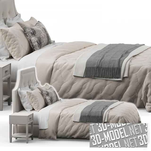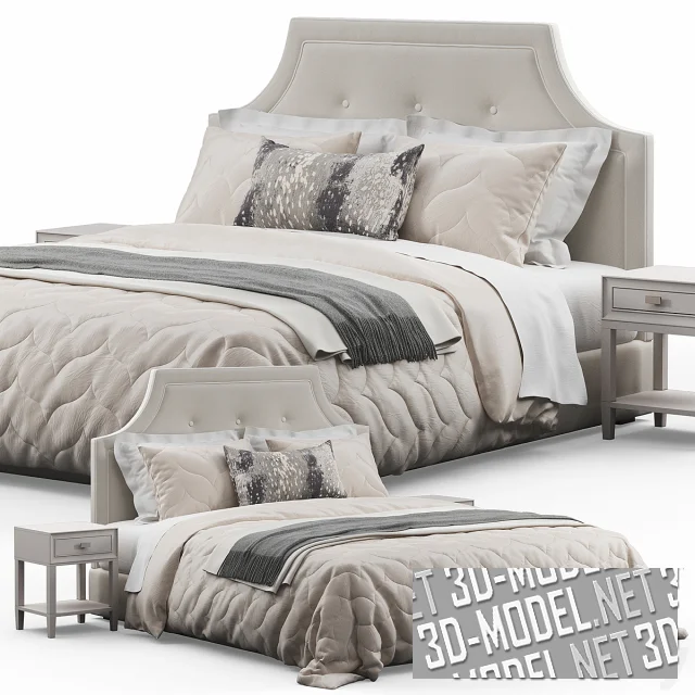 Классическая кровать для интерьера спальни. В качестве дополнения использованы прикроватные тумбы. Изголовье и постельное белье выполнены в одной сочетаемой стилистике, со стеганым узором. Все элементы составляют единую гармоничную композицию, которая подойдет для многих интерьерных решений. Комфортное спальное место обеспечит крепкий и здоровый сон. Размеры кровати: 170 x 200 x В 120 см.