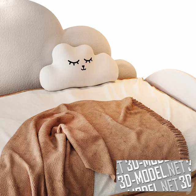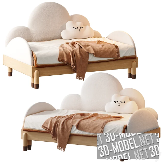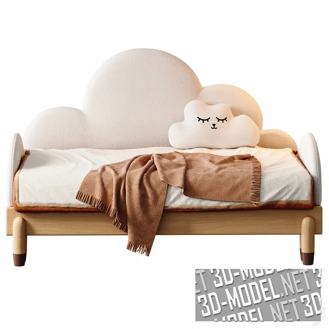 Симпатичная детская кровать от Litfad, выполнена в нейтральных оттенках отделки. Изголовье и подлокотники имеют форму облака, с чем идеально гармонирует предложенная декоративная подушка. Такая кровать будет удачно сочетаться с другими элементами обстановки и создаст в интерьере детской непринужденную, веселую атмосферу.