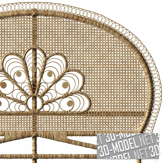 Элегантный предмет мебели в стиле бохо-шик, изголовье Home Republic Francis Rattan Honey для кровати изготовлено вручную из натурального ротанга медового оттенка с использованием плетения. Имеет полукруглую форму с характерным декоративным элементом в виде павлиньего хвоста (цветка) в центре, что придает ему уникальный и изысканный вид.