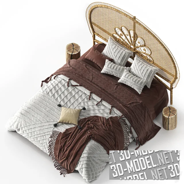 Кровать с изголовьем Home Republic Francis Rattan Honey и бельем от Adairs