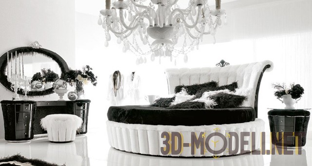 Кровать AltaModa Tiffany. Итальянская элитная спальня Тиффани, выполнена в классическом цвете натуральных сливок. Присутствующие в коллекции пуфики, тумбочки, бюро и даже зеркало покрыты толстым, пушистым мехом. Но роскошная круглая кровать, 3D модель которой здесь представлена, разумеется, является центром мебельной группы и займет главное место в спальне. Изголовье, словно хвост павлина, мягкость и изящество, роскошь и комфорт – она обладает полным набором и достойно займет свое место в пространстве. Модель с настроенными материалами.