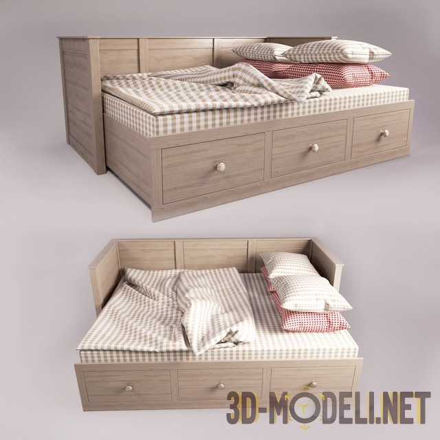 3d модель кровати-кушетки из коллекции Reina, артикул Reina-kush-son. Интересная и функциональная модель – когда кушетка собрана, ее можно использовать в качестве односпальной кровати, в раздвинутом виде превращается в полноценную двухспальную. Кроме того, выдвижная часть кушетки имеет в конструкции три ящика, которые позволяют хранить различные вещи, необходимые в спальной зоне. Корпус кровати выполнен из таких материалов, как МДФ, ДСП 22 мм и березовой фанеры, толщиной 10 мм. Фасад – ЛДСП 16 мм. Размеры: