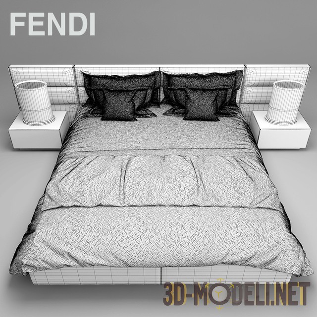 3d-модель двуспальной кровати «Urano» от итальянского производителя Fendi Casa. Кровать имеет отличный современный дизайн и изготовлена из качественных материалов: каркас сделан из дерева, а обивка предлагается в варианте текстиль или кожа из ассортимента компании.