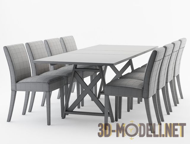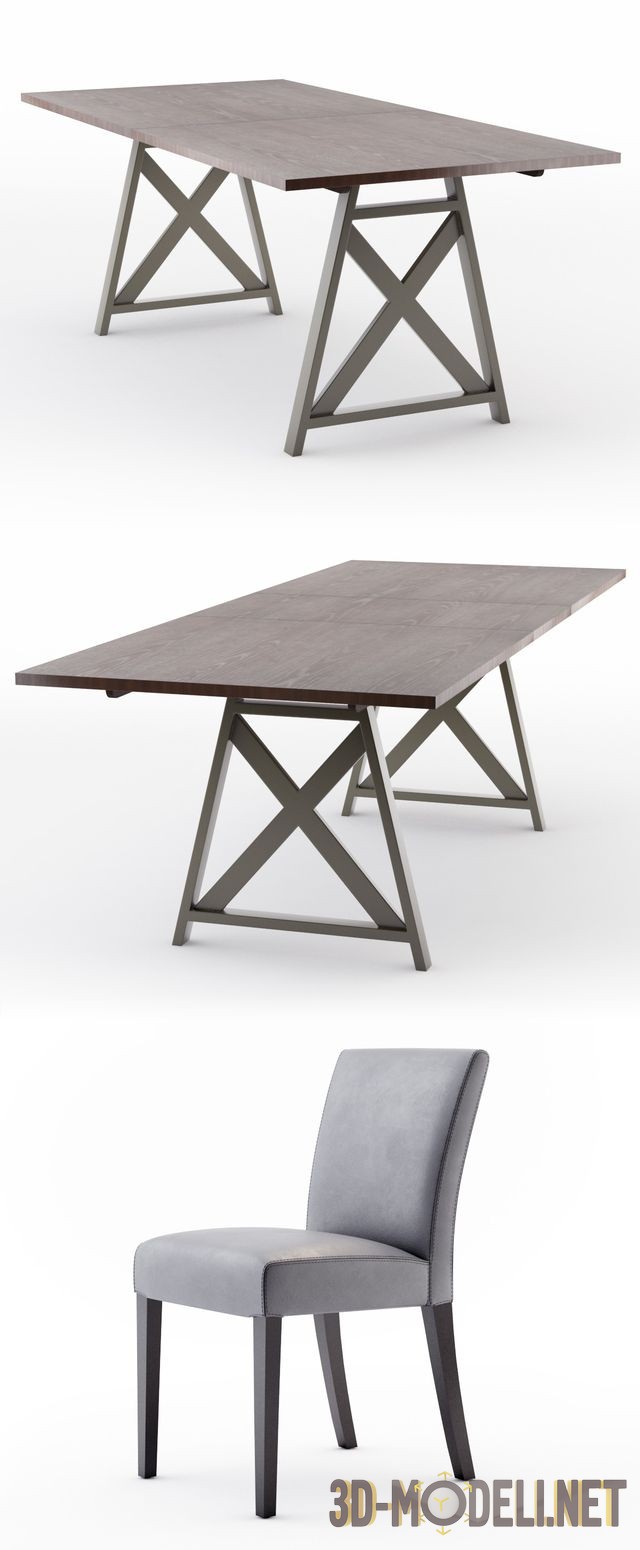 Набор мебели от Crate & Barrel, для интерьера современной столовой или гостиной – стулья Lowe Pewter и стол Metra Extension, который разработал дизайнер Mark Daniel. Стол для повседневного использования, имеет стальные ножки и деревянную столешницу, которая легко увеличивается. Габариты стола: 193 (244) х 93 х 76 см