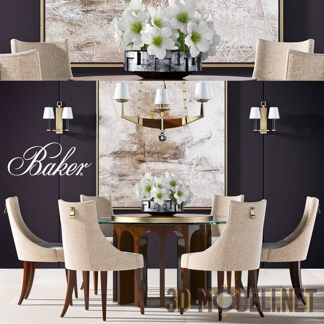 Изящная обеденная группа, стол со стульями Arcade от производителя Baker и дизайнера Thomas Pheasant. Взятая за источник вдохновения арка, как уникальный архитектурный элемент с чувством перспективы и массой способностей, стала основой Arcade. Такой стол идеально подходит для столовой, гостиной, большой кухни, и вмещает восемь человек. Размеры стола: W 170,2 см, D 170,2 см, H 74,3 см. Входящие в комплект стулья гармонично дополняют набор, а цветы, картины и другой декор привносят живость и натурализм.