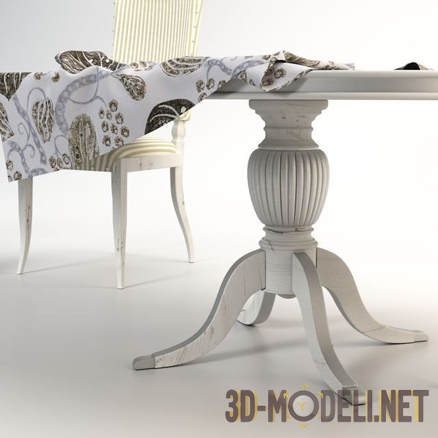 Комплект мебели в классическом стиле от Bizzotto Traditional - в комплекте изящный стол, стул и скатерть. Скатерть из ткани с использованием дизайна William Yeoward. Такая мебель станет изысканным центром в интерьере столовой, гостиной или кухни.