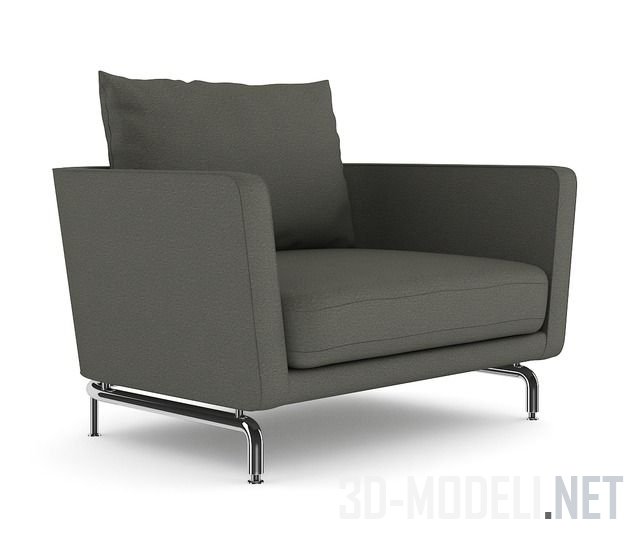 Современная мягкая мебель, набор состоит из дивана и кресла, красивого ненавязчивого цвета. Прямоугольные подушки на спинке, прямоугольные мягкие боковины и хромированные П-образные ножки придают мебели строгий, но современный вид.