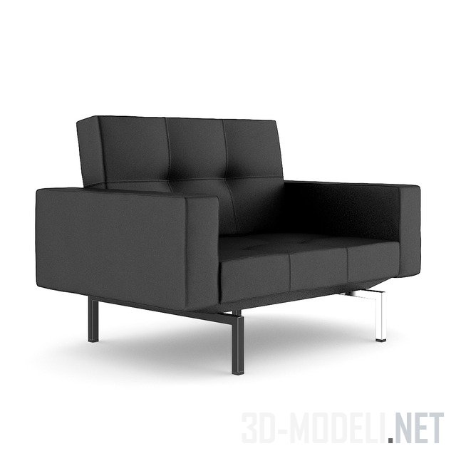 Придать интерьеру строгость и элегантность поможет 3D-модель современного набора мебели, который вклчает в себя диван и кресло. Мебель отличает геометричность форм и лаконизм.