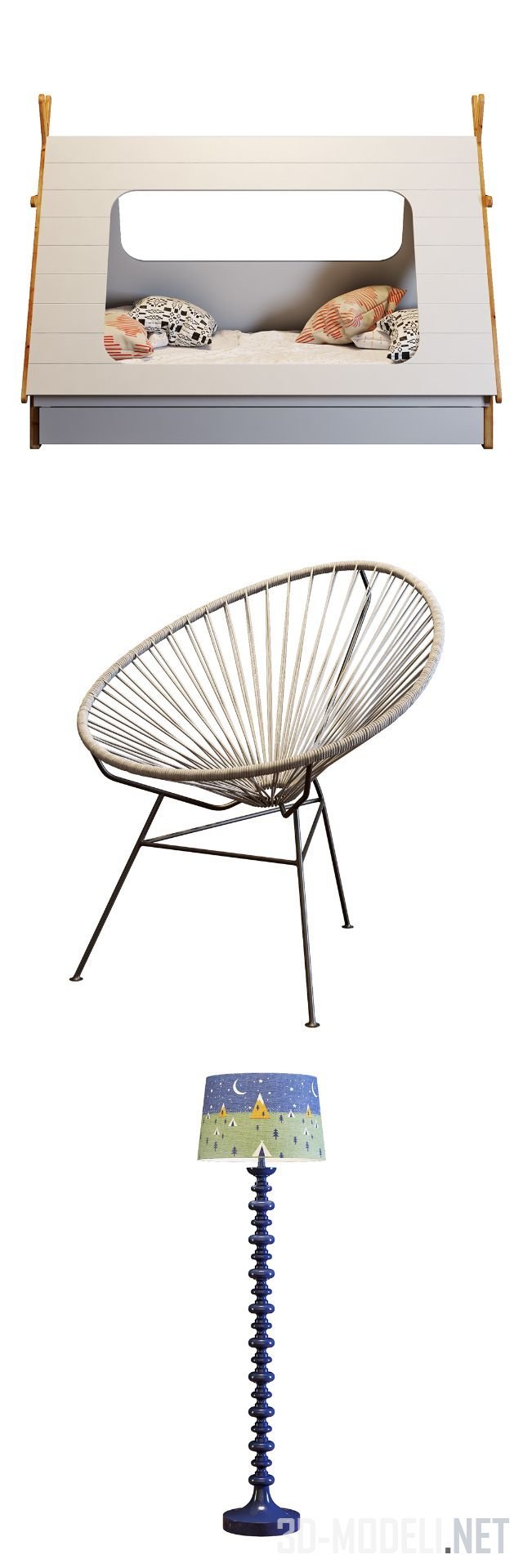 Crate and Barrel, кровать, хижина, лампа, кресло, газетница, флажок, гирлянда, ковер, этнический, современный