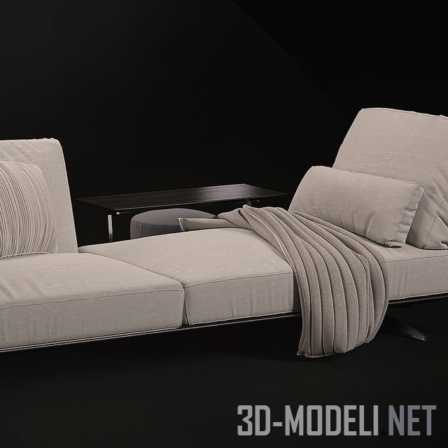 Набор мебели от бренда Flexform, хорошо подходит для современной гостиной. В комплект входит диван Flexform Evergreen, столик Cestone Tavolini и пуф Feel Good Pouf.