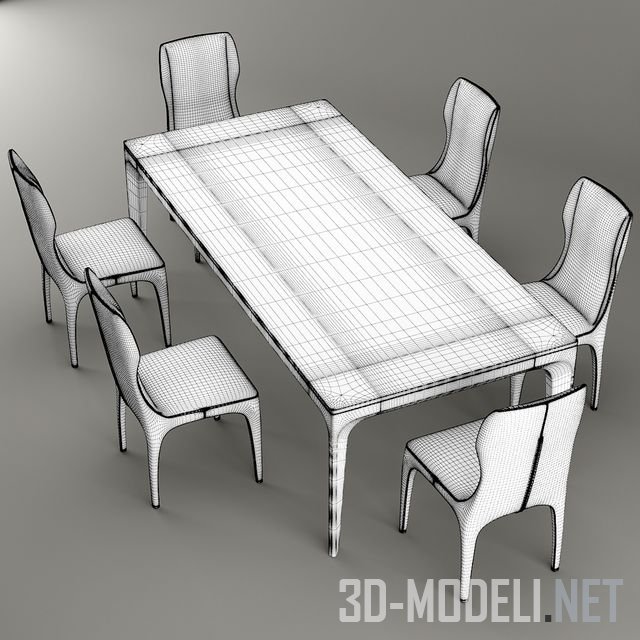 Стул и стол для современной столовой, гостиной или кухни, серия Tiche от Giorgetti. Реалистичная трехмерная модель с текстурами в архиве.