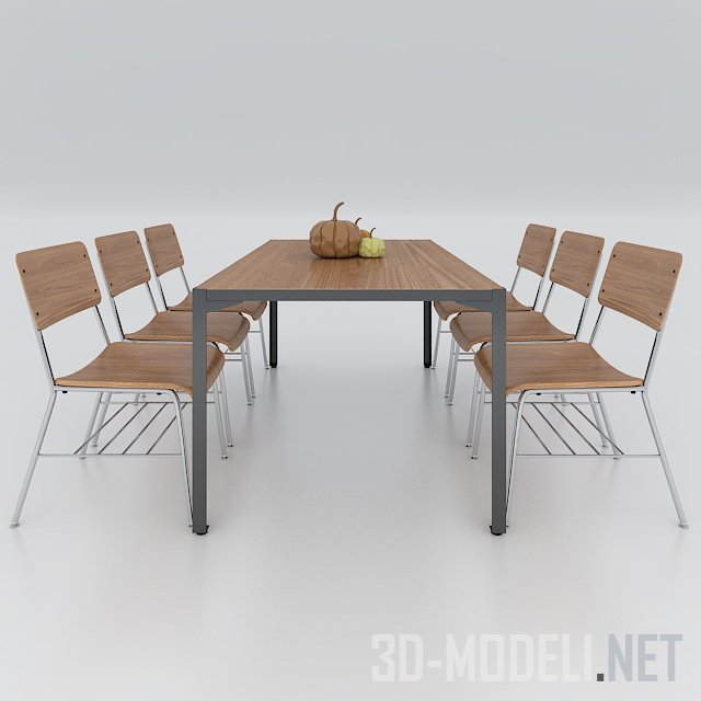 Большой прямоугольный обеденный стол CHESTER, размером 1800 х 900 х 710. Стол с деревянной столешницей. В комплекте стулья, с деревянными спинками и сиденьями. Размеры стула: 505 х 805 х 420.