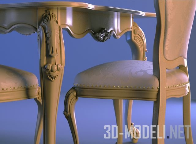 Обеденная группа в классическом стиле от фабрики Cavio, стол и стулья. Качественная и реалистичная трехмерная модель с текстурами и материалами.