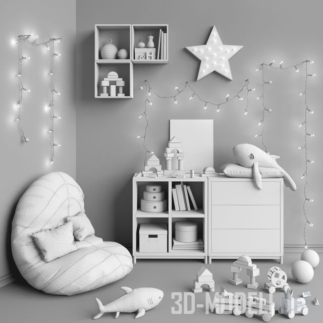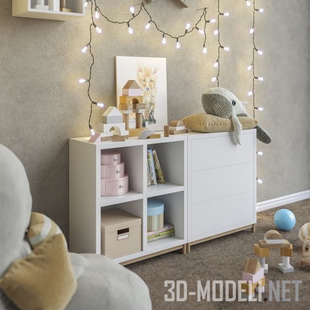 современный, гирлянда, игрушка, модульный, шкаф, полки, пуф, коробка, подушка, буква, лампа, гиря, поезд, IKEA