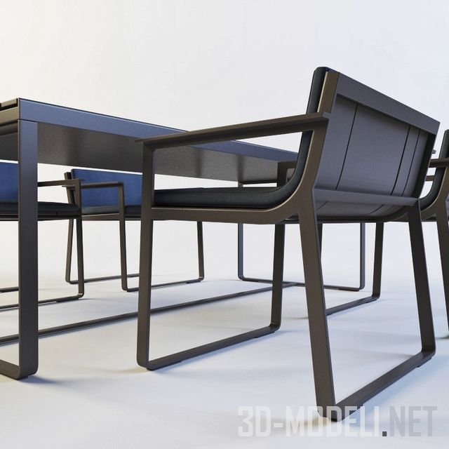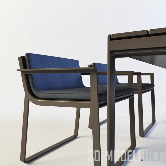 Набор современной мебели, стол и стул, модель Banco Flat от дизайнера Mario Ruiz. Текстура в архиве.