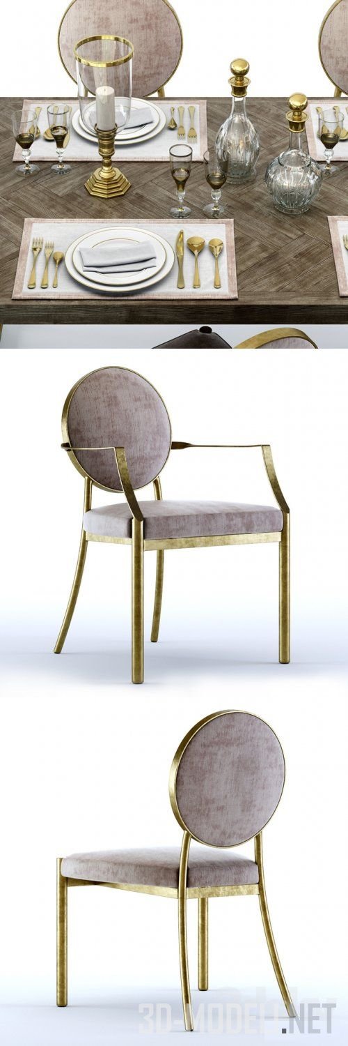 Комплект элегантной мебели от Eichholtz, в составе которой обеденный стол Melchior с сервировкой и стулья Scribe. Все текстуры собраны в архиве.